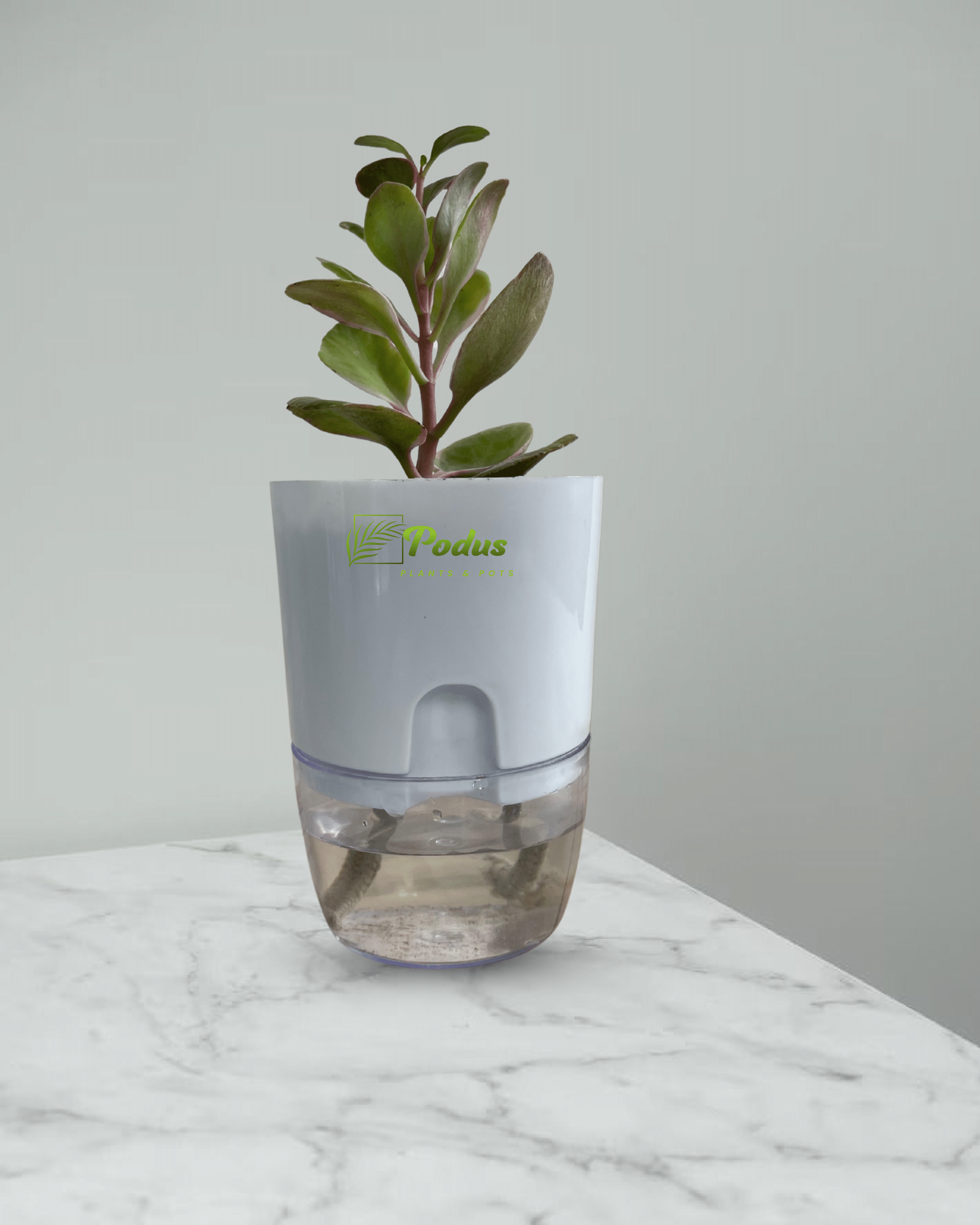 Place the plant in bright, indirect light. Water just once a week, or only when the top soil feels dry. The self-watering pot delivers water slowly, so the roots stay happy and healthy.