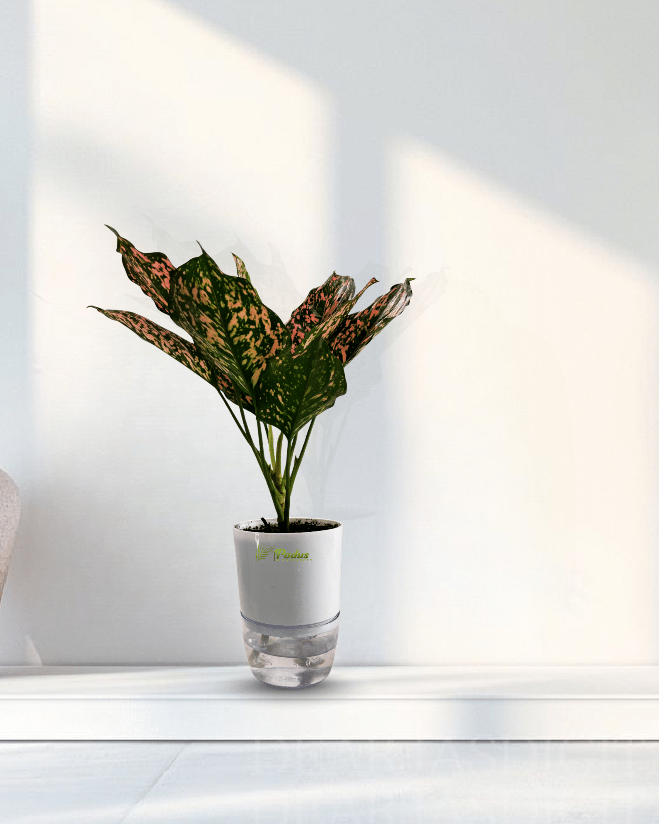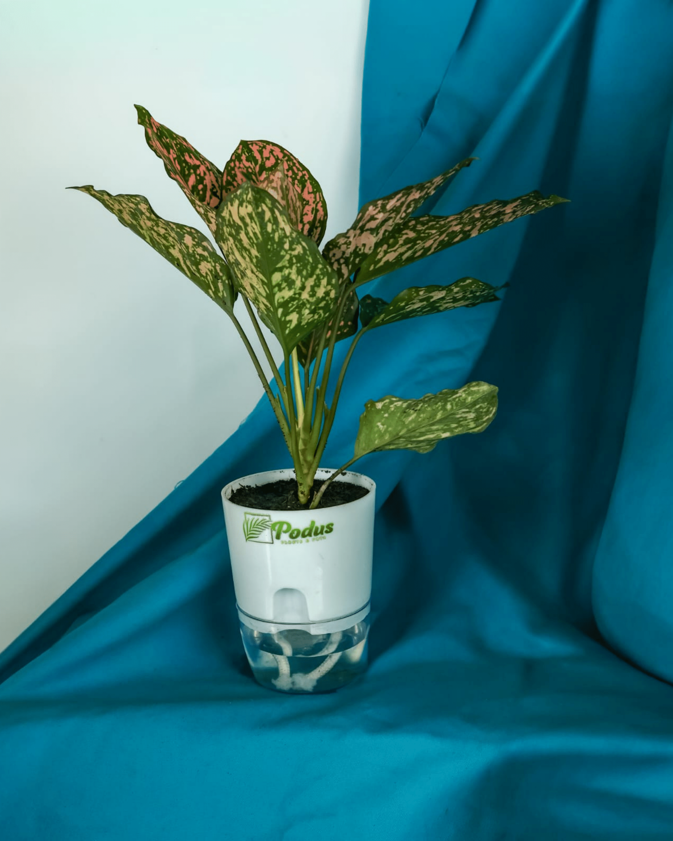 This Aglaonema “Pink Leopard” with a self-watering pot is great for anyone who wants their plant to look lively and vibrant for longer. Just fill the pot once, and it will do the watering for you.