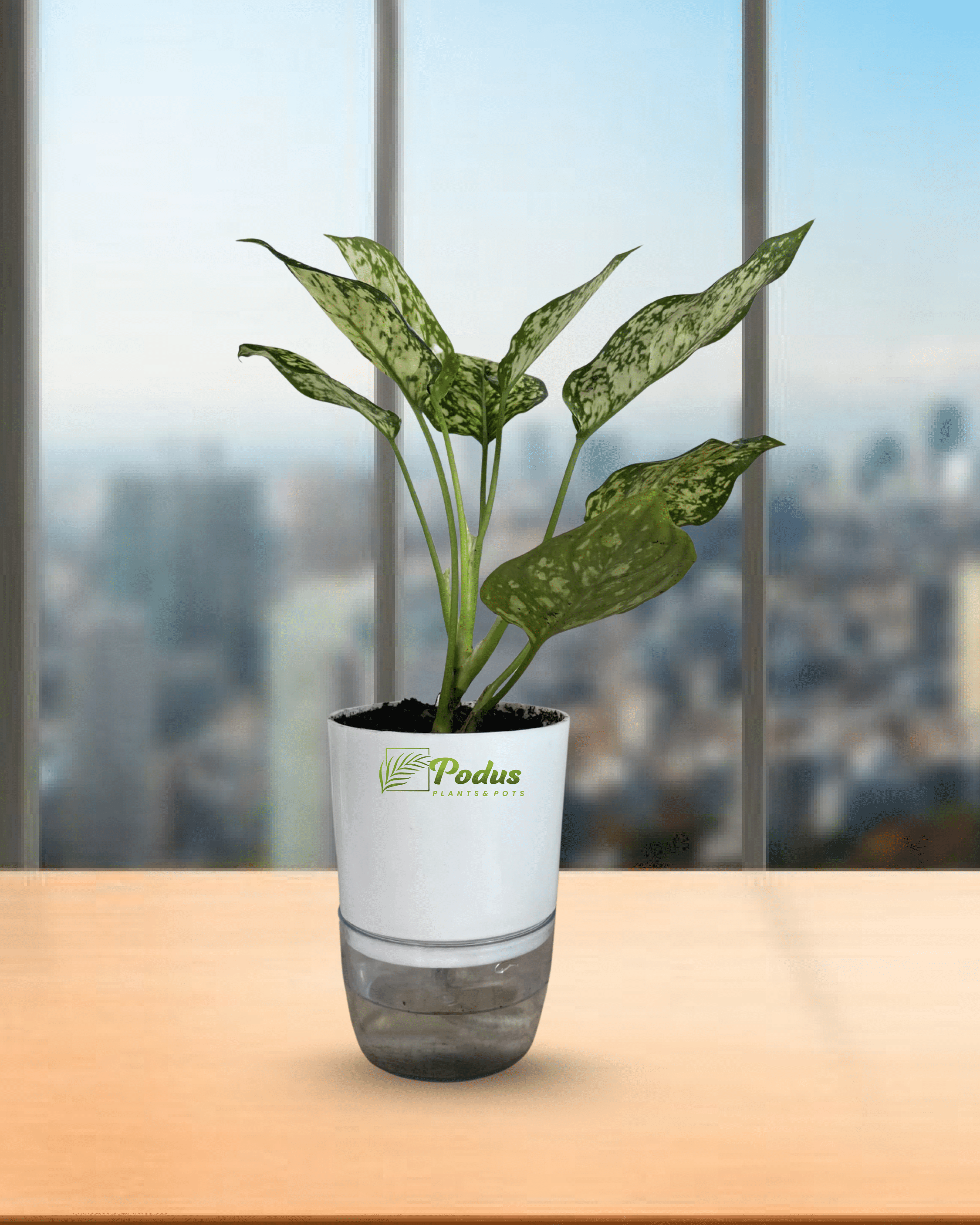 This Aglaonema “Moon Light” with a self-watering pot is ideal for anyone who wants a fresh plant that stays vibrant. Fill the pot once, and the system will take care of soil moisture for you. It’s an easy way to have beautiful foliage without daily watering.