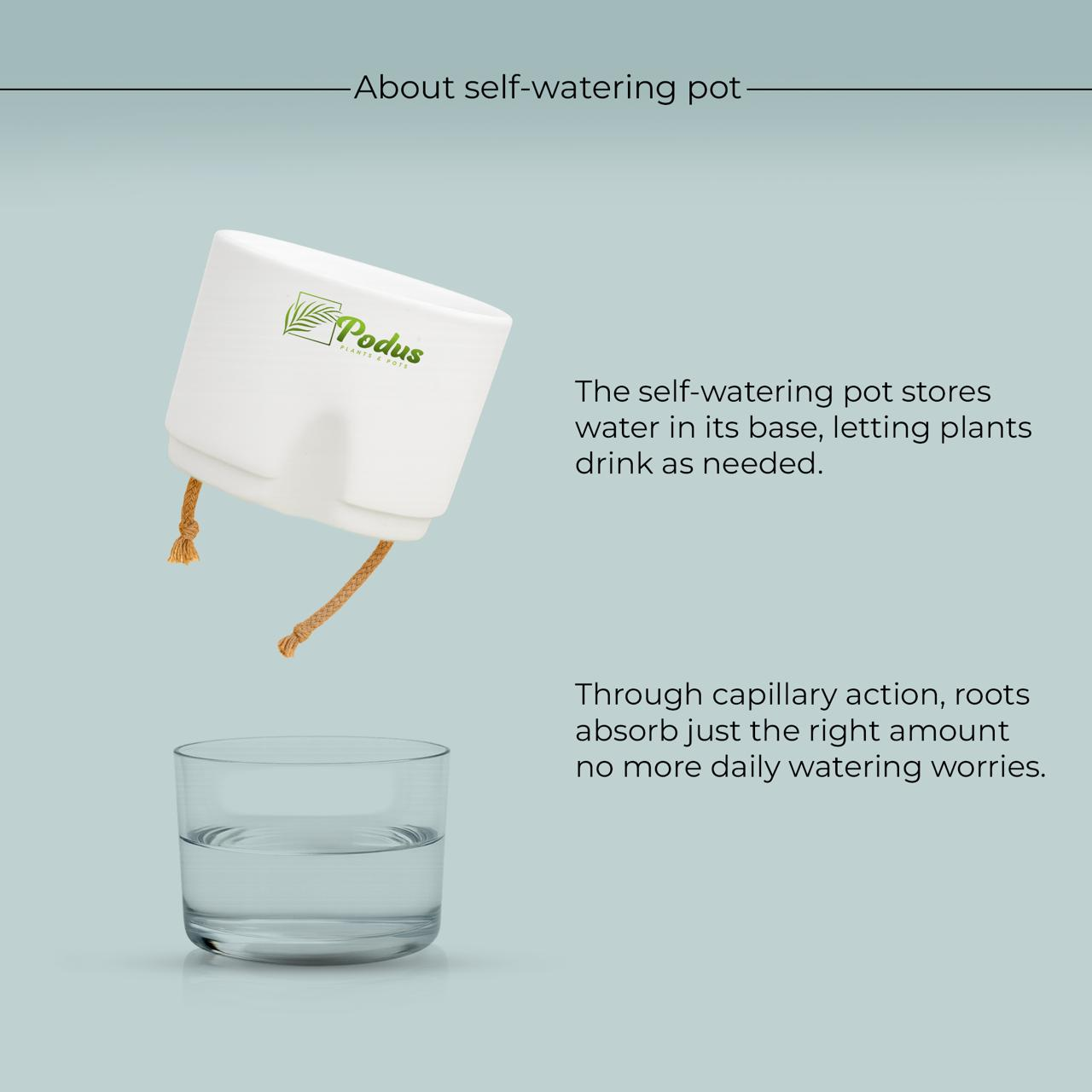 Place in bright, indirect light. Water once a week or when the top soil feels dry your self-watering pot will release water gently and keep roots happy.