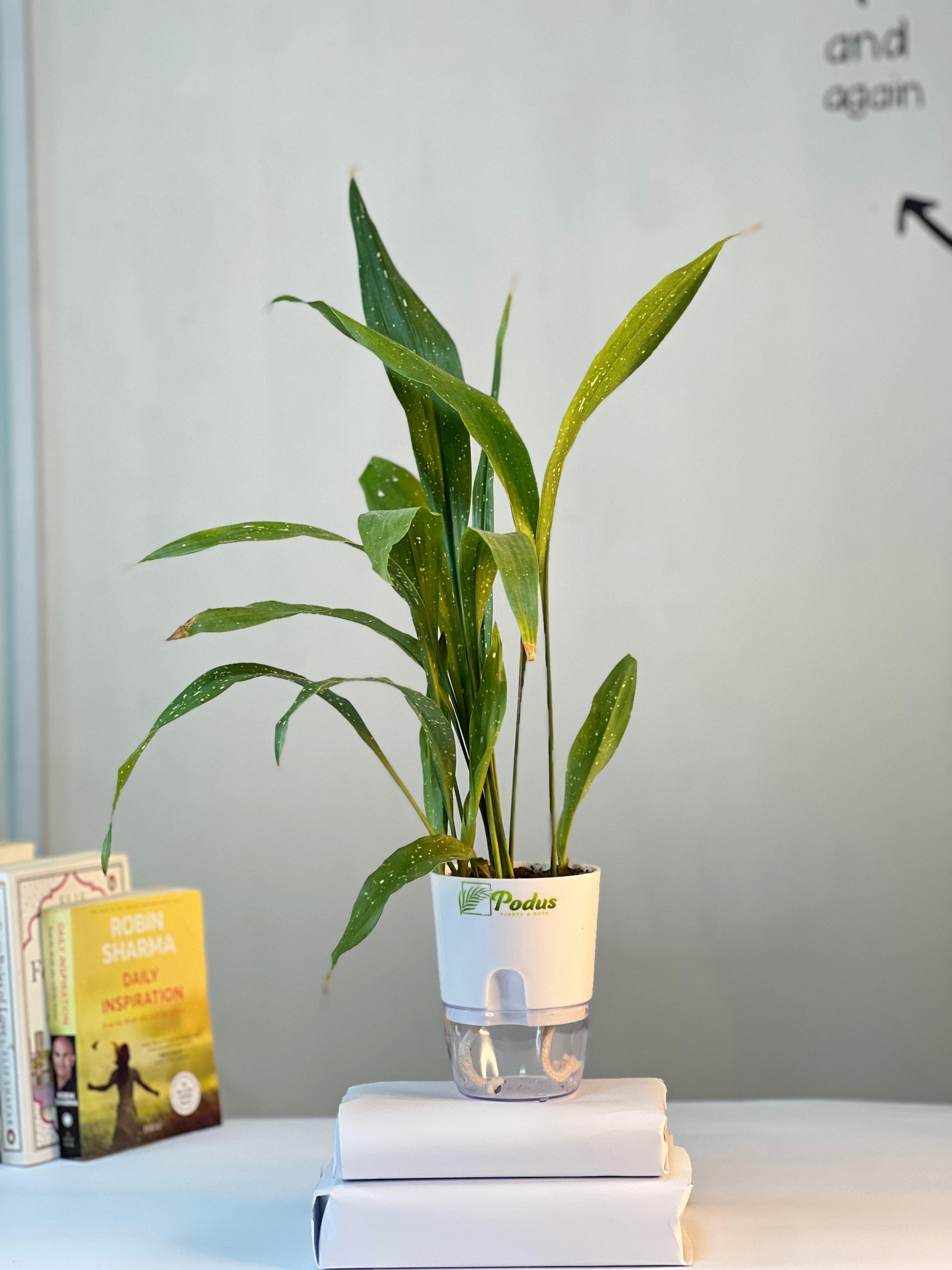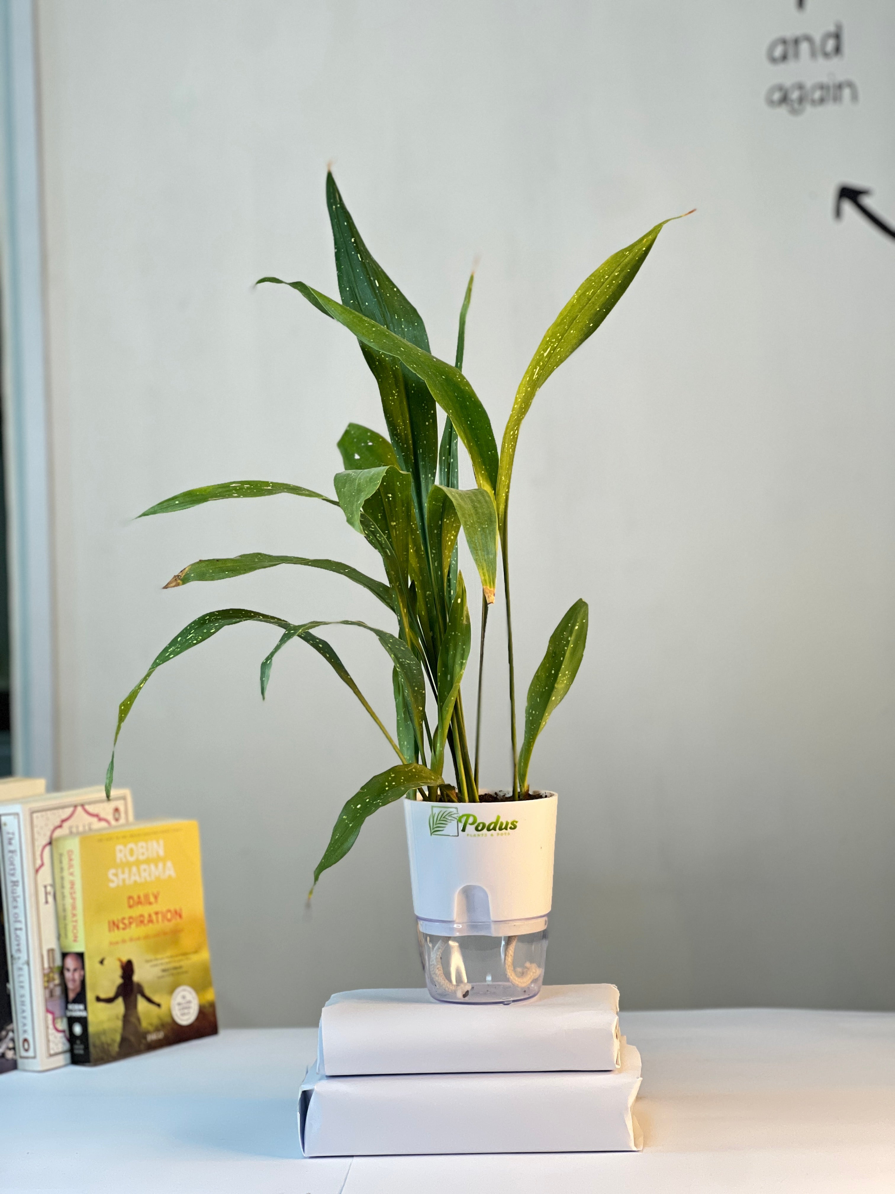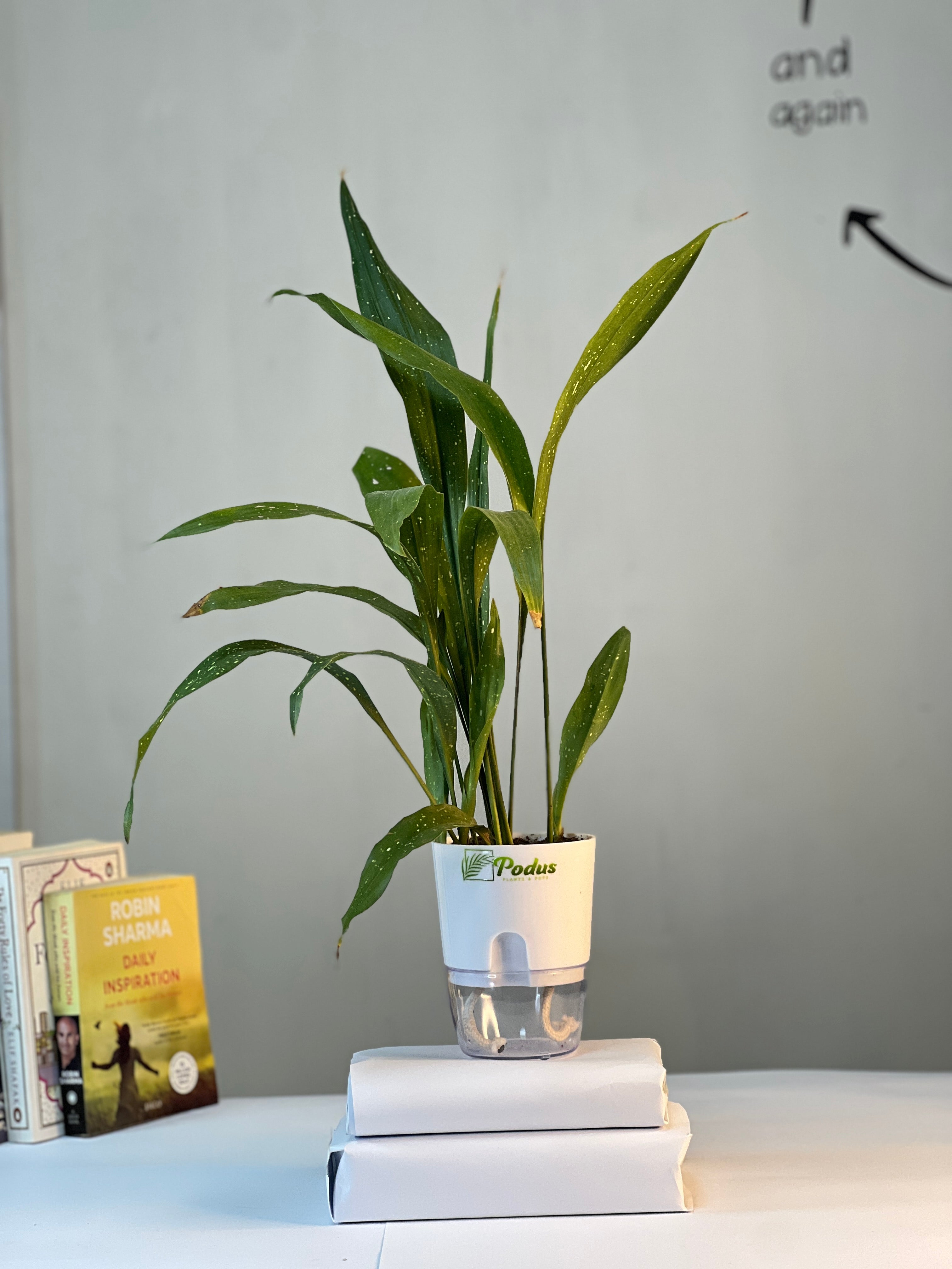 The Aspidistra, also known as the Cast Iron Plant, is one of the toughest and easiest indoor plants to care for. It comes in a self-watering pot, making it perfect for anyone who wants a beautiful, healthy plant without daily maintenance.