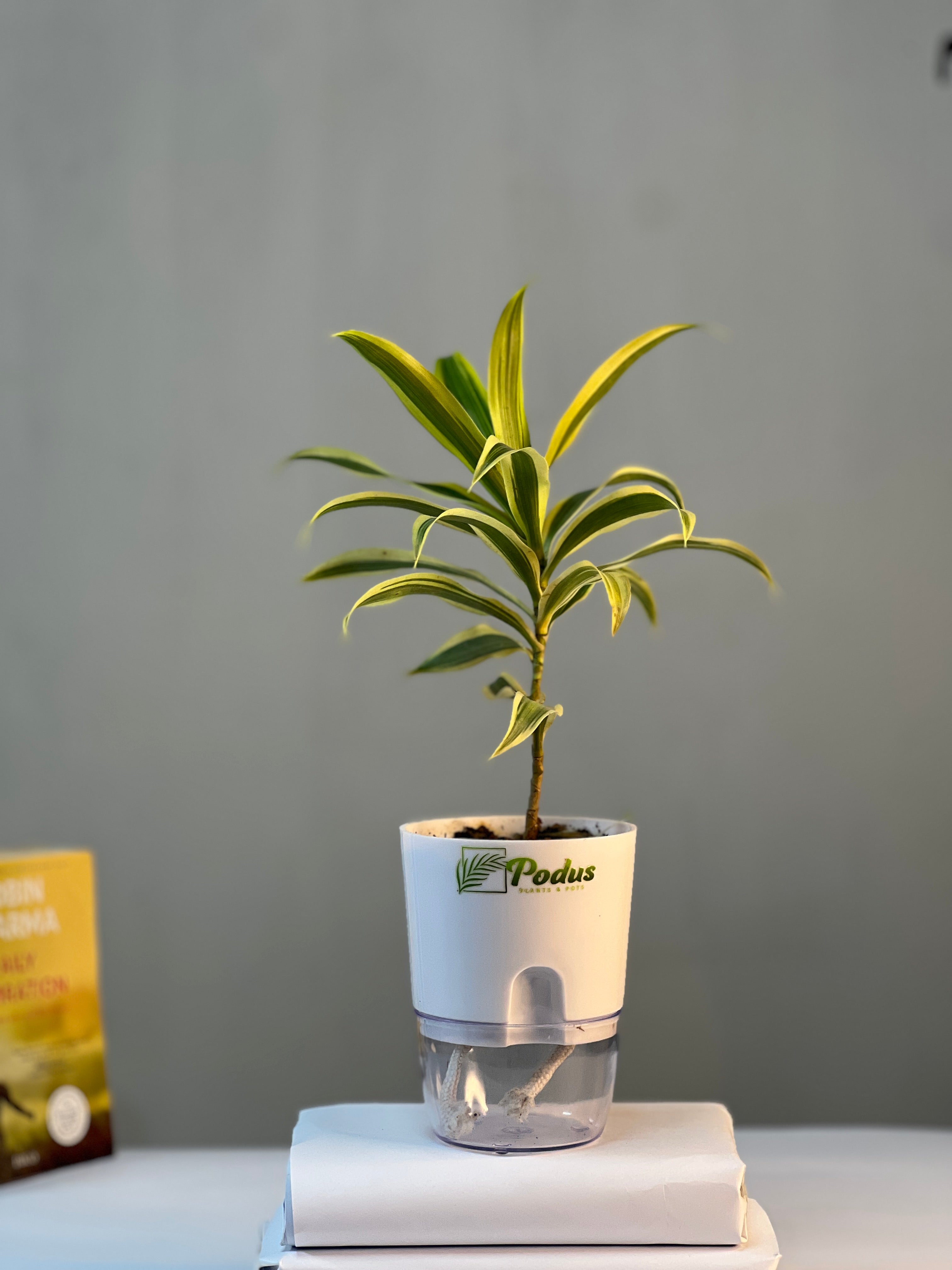 Dracaena Reflexa (Song of India)  with Self-Watering Pot Brighten your home or office with the Song of India. This striking plant comes in a modern self-watering pot that reduces daily effort. .