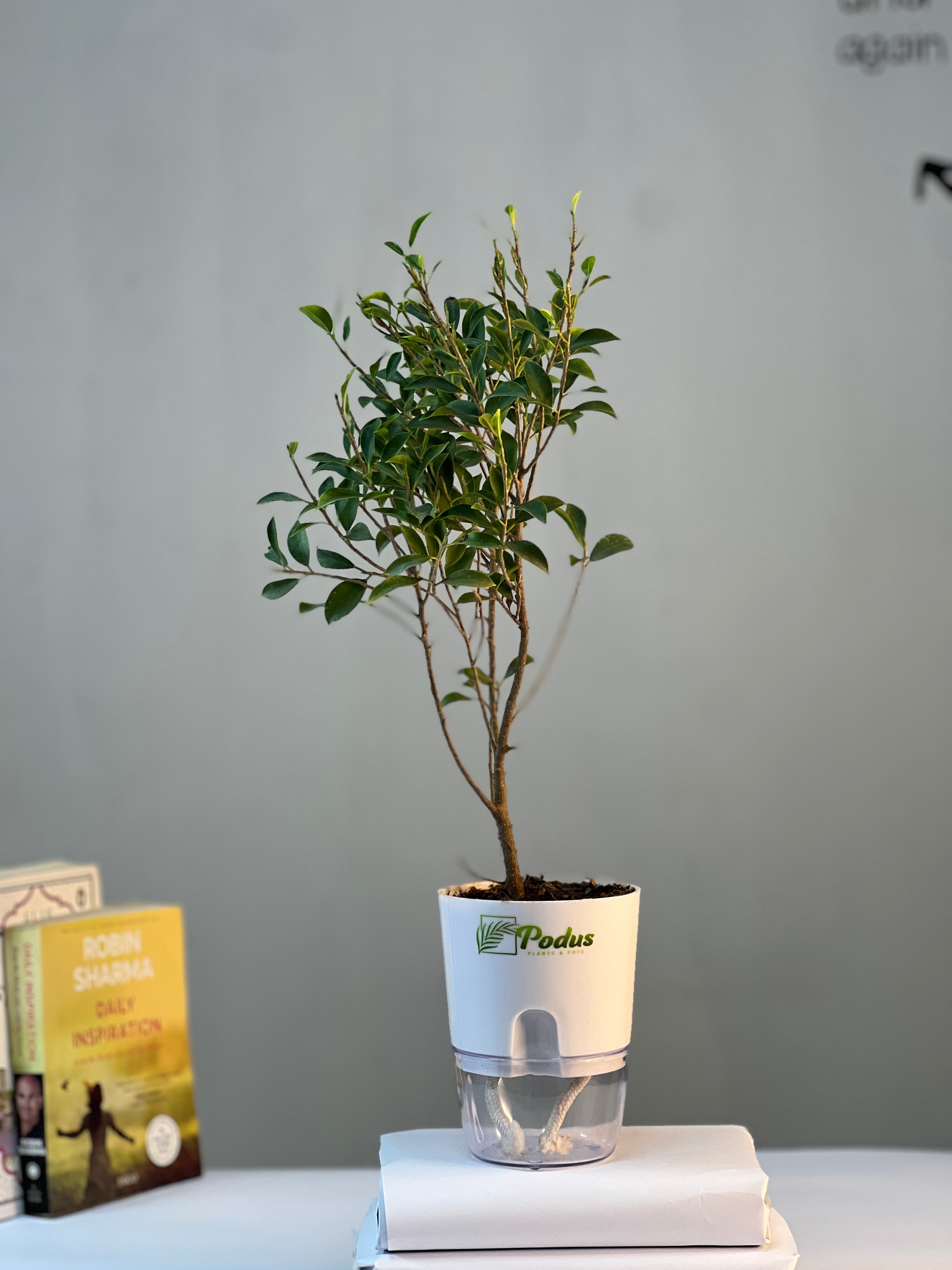 The Ficus Benjamina, also known as the Weeping Fig, is a graceful indoor plant that brings a touch of natural elegance to your home or office. It comes in a self-watering pot, keeping your plant fresh, green, and healthy with very little effort.